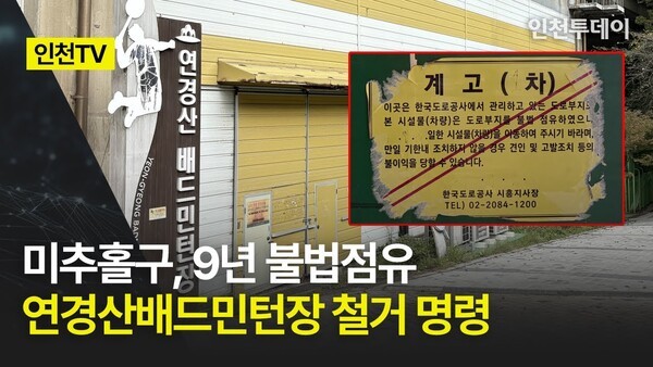 인천 미추홀구가 한국도로공사 땅에서 9년간 불법점유하며 연경산 배드민턴장을 운영해 철거 명령을 받았지만 유예를 요청하고 있습니다.